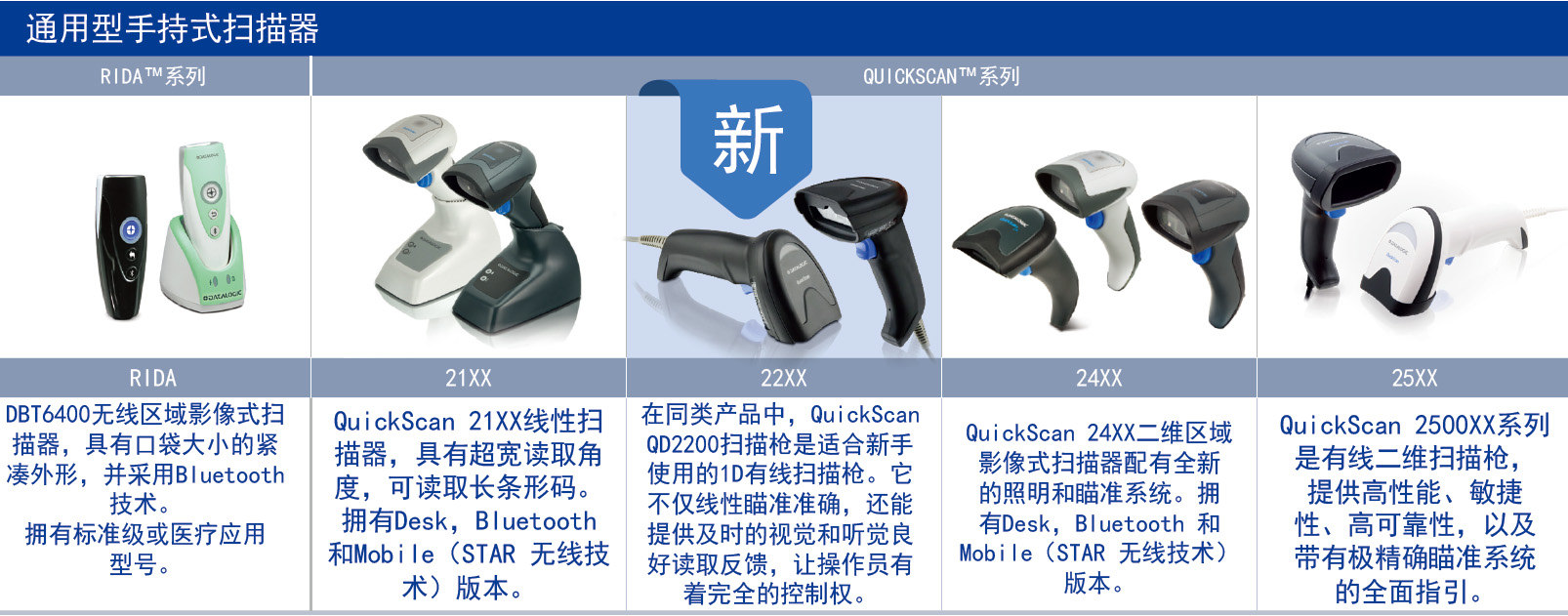 種類(lèi)齊全的通用型手持掃碼槍為數(shù)據(jù)收集提供了多種選擇(有線和無(wú)線型號(hào)),可輕松滿足當(dāng)前和未來(lái)的需求和應(yīng)用。具備快速的閱讀性能、易于安裝和使用、準(zhǔn)確性和可靠性。從數(shù)字或印刷的一維和二維條碼, 為每一個(gè)條碼閱讀應(yīng)用提供手持式掃描解決方案。